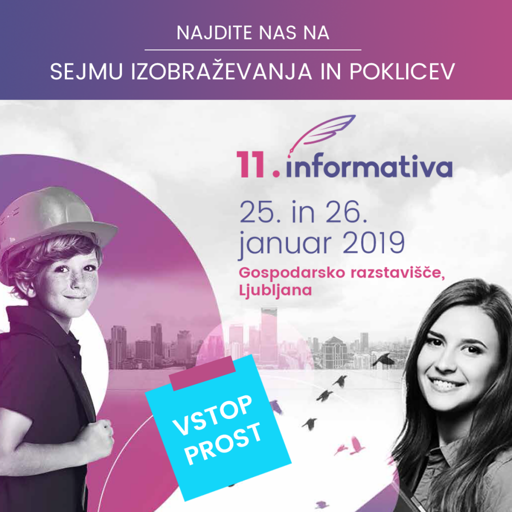 Največji vseslovenski sejem izobraževanja in poklicev Informativa bo 25. in 26. januarja 2019 na Gospodarskem razstavišču v Ljubljani že enajstič na enem mestu predstavil celovito paleto izobraževanj – od srednješolskih vse do dodiplomskih in podiplomskih programov.